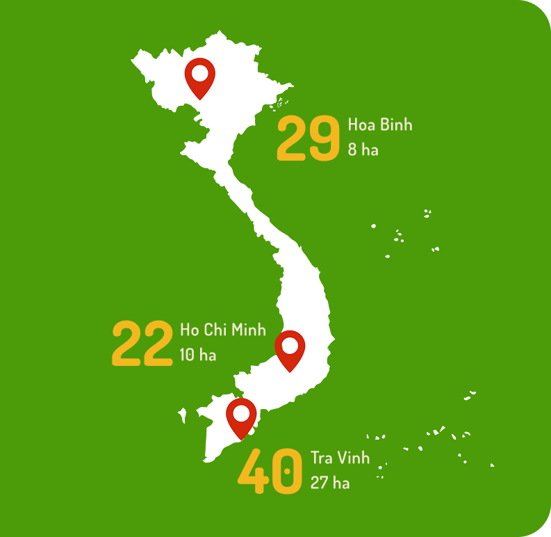 Every jar of Đạt Foods nut butter begins with the hard work of farmers across Vietnam’s fertile regions, shown on the map below. As a social impact enterprise, we partner with these farmers to promote fair wages, sustainable practices, and community growth.